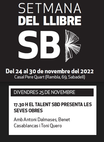 Demà, ben acompanyat, durant la primera Setmana del Llibre de Sabadell, parlaré de la meva obra i, en especial, de Párpados, editada per Galaxia Gutenberg, i d’El cielo y la nada, editada per Castalia.